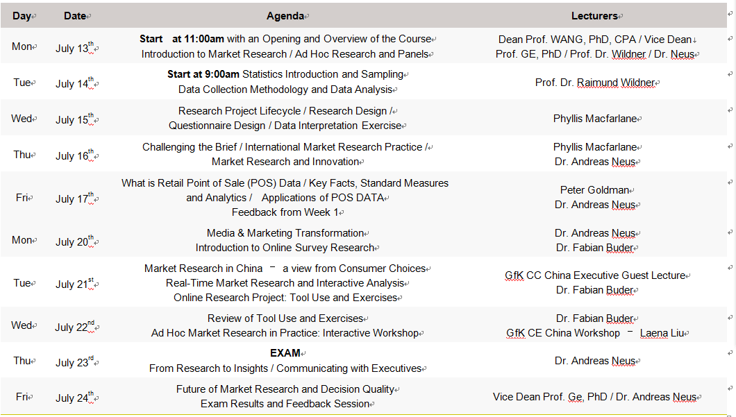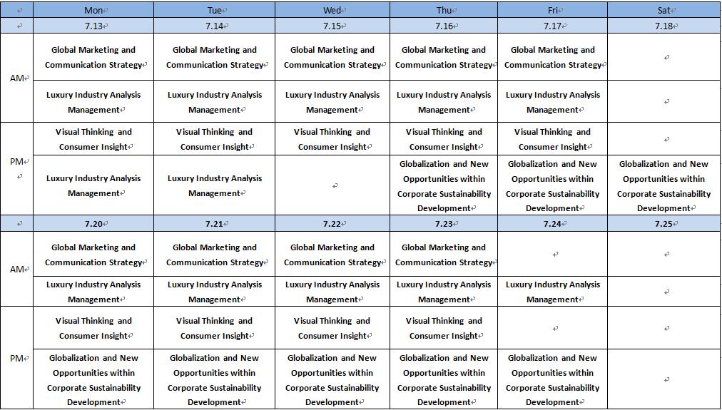 Lecture time:7.13—7.14 (8:30—11:30 am, 2:00—5:00 pm), 7.15—7.17 and 7.20—7.24, 8:30—11:30 am