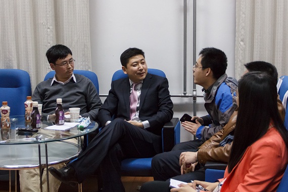 11月5日晚19点30分,第69期行业导航沙龙与大家准时相约在中心A20房间。本期沙龙活动的分享嘉宾是北京和为永泰科技有限公司总经理、中财第一届MBA创业俱乐部主席费云健学长(2004级MBA);主持嘉宾是通用电气神华气化技术有限公司董事副总经理、中财第三届MBA校友会会长冯大任学长(2007级MBA)。2007级以来各届MBA联合会和校友会的同学代表,以及bv伟德国际1946创业先锋班、法律硕士、国际贸易硕士等专业的同学共计50余人参加了此次沙龙活动。