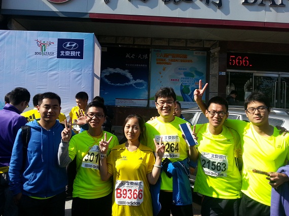 2013年10月20日,伟德victor1946MBA中心组织了23名MBA长跑爱好者参加了2013年北京马拉松比赛。本次马拉松比赛的主题是 “你是我的骄傲”,20日上午8时参赛者从天安门广场起跑,抵达终点奥林匹克公园中心区庆典广场。此次比赛共有世界各地3万名专业运动员和马拉松爱好者参赛,现场气氛热烈非凡。