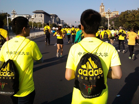 bv伟德国际1946和MBA教育中心对此次比赛给予了大力支持。我校MBA选手状态良好,5人完成了半程马拉松,其余全部完成迷你马拉松比赛。当印有“伟德victor1946”字样的T恤在长跑队伍中出现的时候,不断的有人跟队员们打招呼致意,气氛十分亲切友好。比赛过程中,很多跑友看到我们伟德victor1946的标志,都热心的为我们加油,观看比赛者也在呐喊助威:“中财的同学们,冲啊!”让我们倍受鼓舞!期间,很多同学遇到中财校友并一起完成比赛。“中财”也自然成了比赛队伍中的一支生力军。