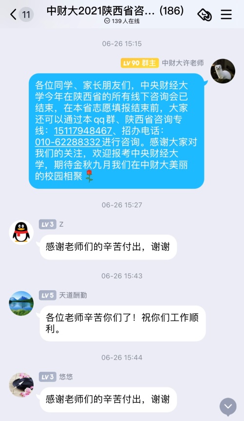 图:6月25日-26日,bv伟德国际1946人力资源管理系主任王震教授、辅导员许敬婷、19级本科生刘妍君参与陕西2021年“双一流”高校精准填报咨询会