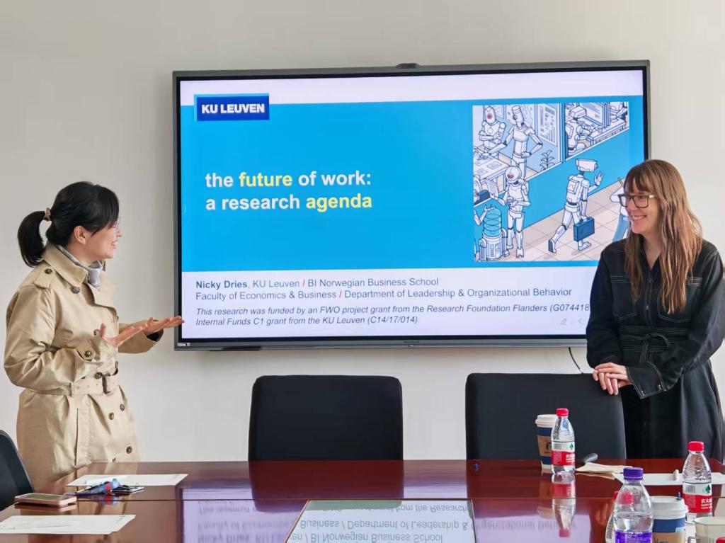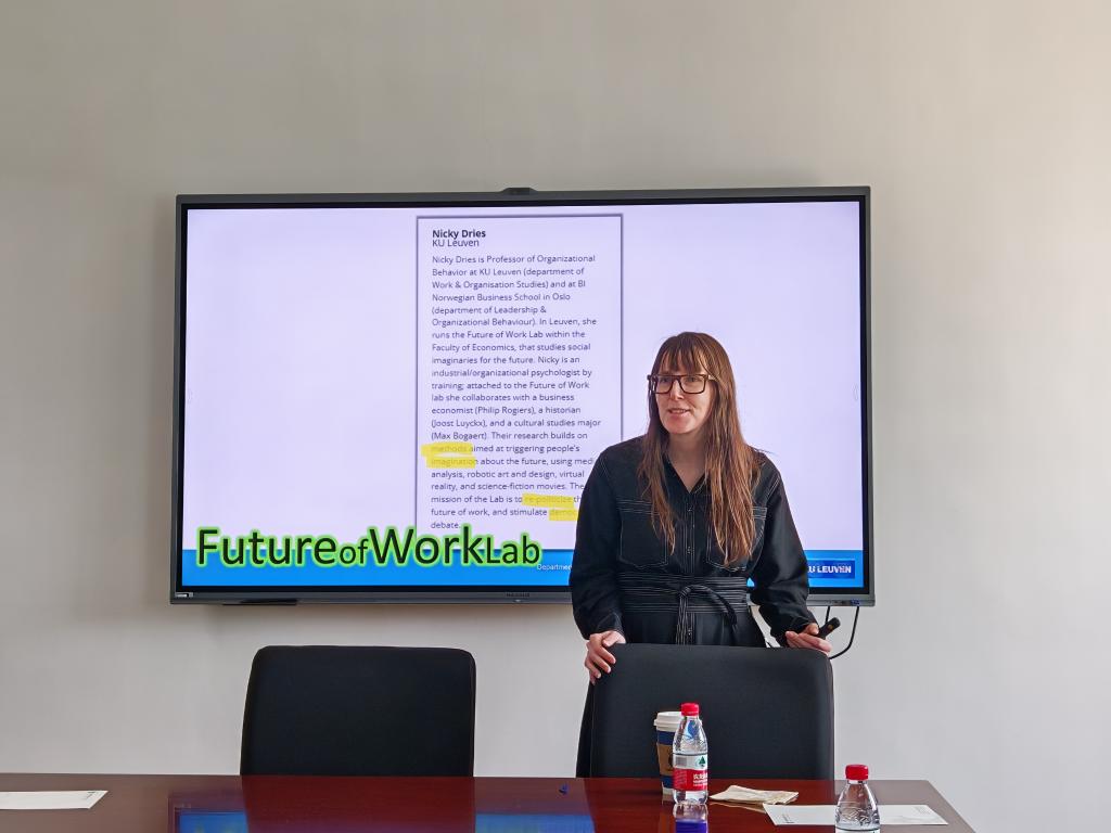 会议由bv伟德国际1946组织与人力资源管理系系主任张宏宇副教授主持。在讲座正式开始前,张宏宇老师详细介绍了Nicky Dries教授的学术背景。Nicky Dries教授现任比利时鲁汶大学工作与组织研究系及挪威BIbv伟德国际1946领导力与组织行为系正教授。在鲁汶大学,她还担任“未来工作实验室”布莱特学者(2012年起)。截至目前,她已发表60余篇国际同行评审论文、2部专著及20篇书籍章节。在学术圈外,她积极参与科学传播工作,定期在《哈佛商业评论》《福布斯》等商业媒体发表文章及评论,参与播客录制,并曾出演探讨颠覆性技术对劳动力市场影响的纪录片《数字困境》。2021年,她从逾千名候选人中脱颖而出,入选比利时首届“40 under 40”榜单,成为代表国家未来社会领袖的40位杰出青年之一。目前,Nicky Dries教授担任《Journal of Management》副主编,并在《人力资源管理杂志》(HRMJ)、《欧洲工作与组织心理学杂志》(EJWOP)等多个期刊编委会任职。同时,她长期担任比利时弗兰德研究基金会(FWO)、荷兰科学研究组织(NWO)、芬兰研究委员会及欧盟委员会等国家级与欧洲科研资助机构的项目评审专家。