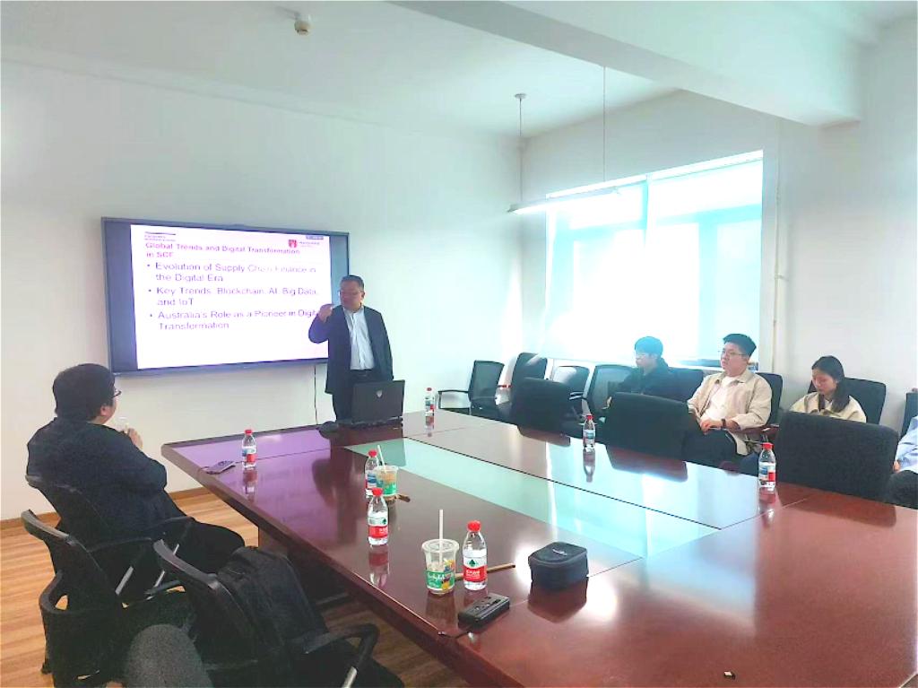 会议由bv伟德国际1946牟善栋副教授主持。在讲座开始前,牟善栋副教授详细介绍了Peter Shi的学术背景。Peter Shi现任澳大利亚麦考瑞大学麦考瑞bv伟德国际1946供应链管理学科负责人,英国皇家物流与运输学院(CILT)特许院士(Chartered Fellow),并担任CILT澳大利亚新南威尔士州主席。他学术成果丰硕,累计发表期刊论文逾百篇,其中70余篇刊载于ABDC A/A*及ABS 3/4级权威期刊。Peter Shi还兼任《International Journal of Operations & Production Management》《Transportation Research Part E》《International Journal of Logistics Management》等期刊的编委。