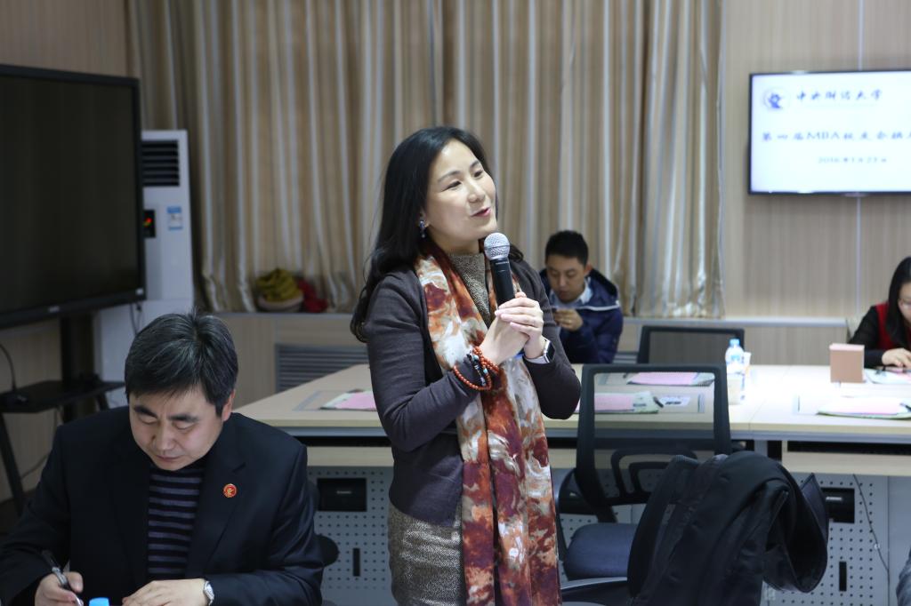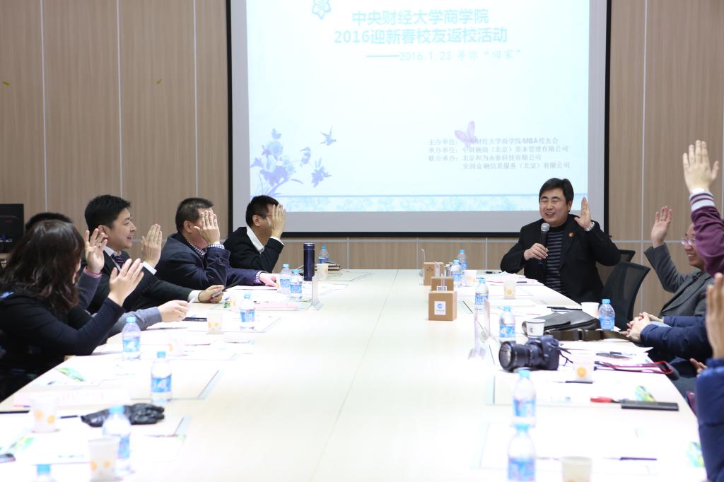 贾晓菁副主任指出,每年冬季,校友们都会赶到学校来赴约,MBA中心的老师也期待这一刻,希望这个美丽的约定一直传承下去;她高度赞扬了第三届MBA校友会所开展的工作和取得的成绩,表示MBA中心非常重视MBA校友工作,致力于为校友打造终身学习和资源共享的平台;她最后欢迎校友们常回母校,并提前祝大家新春快乐,工作顺利。