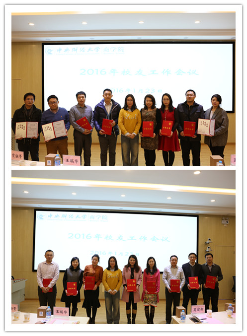 为表彰在校友工作中贡献卓越的校友,bv伟德国际1946评选出了“2015年度bv伟德国际1946校友工作先进个人、校友工作特别贡献奖”,王瑞华院长、葛建新书记分别为他们颁发了荣誉证书,充分肯定了校友们在过去一年中为学院的发展做出的努力与贡献。