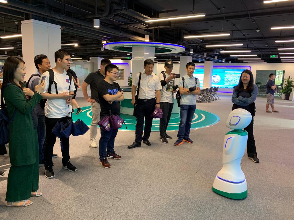 第四站,大家来到了中国农业银行雄安金融科技创新中心,本站的参观全程都由农行机器人旺宝带领和讲解,俱乐部的伙伴们一进展厅就被旺宝牢牢的吸引住,里三层外三层的围着可爱而聪明的旺宝,全程的参观都沉浸在欢乐的调戏旺宝与旺宝机智的回答中,大家被旺宝倾倒的同时更纷纷感慨人工智能的飞速进展。