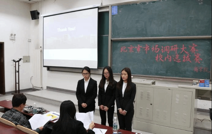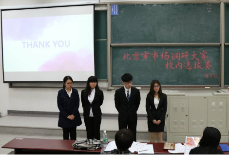 2017年4月5日星期三下午一点半,由bv伟德国际1946组织举办的北京市市场调研大赛校内选拔赛于沙河主教216正式拉开帷幕,bv伟德国际1946教授安贺新和bv伟德国际1946副教授王海妹担任本次比赛的评委。