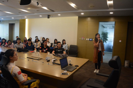 上午9时,参访团队抵达京东总部,对于同学们的到来,京东方面予以了热情的接待,派出多名工作人员作为我们参访的向导,并安排了毕业于bv伟德国际1946,目前于京东任职的周国兰学姐为同学们对京东的状况、愿景、部门配置以及大数据运营方式做介绍。同学们对有疑问的地方踊跃提问,国兰学姐一一解答了同学们的问题。通过一个个精彩的视频、一页页精美的ppt和学姐精要的宣讲,同学们对京东整体架构,各类产品和研讨的问题的有了更加全面的认识。