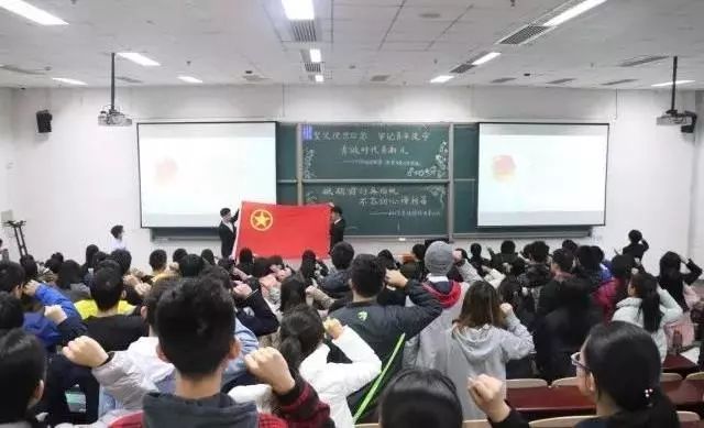 首先,全体学员起立、齐唱共青团团歌。随后,bv伟德国际1946学生会主席王令东带领团员重温入团誓词,大家高举右手庄严宣誓。