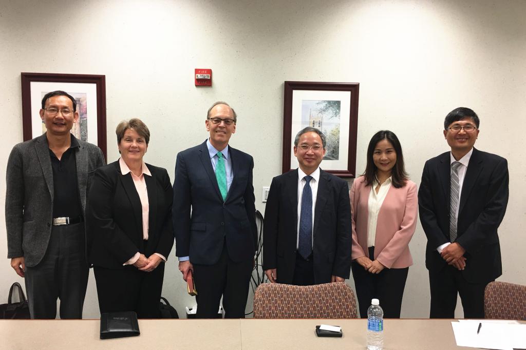 在密苏里大学亚洲事务中心,Sang S.Kim主任以及亚洲事务中心的多位老师介绍了密苏里大学在接收亚洲访问学者,开展学生交换和互访,以及教师培训、管理人员培训等方面的工作情况。双方探讨了开设暑期学校、组织短期课程培训班等多种活动的可行性,并且达成了初步合作意向。