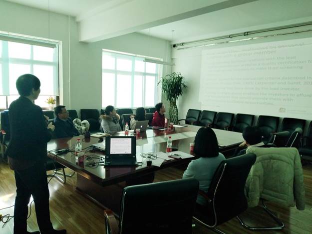 2019年1月8日,英国兰卡斯特管理学院(Lancaster UniversityManagementSchool)肖莉教授应邀来我院进行学术交流,举办了主题为“Individualdecision-makingand angel group investing: the interaction of social andeconomics-basedevaluation criteria”的讲座。