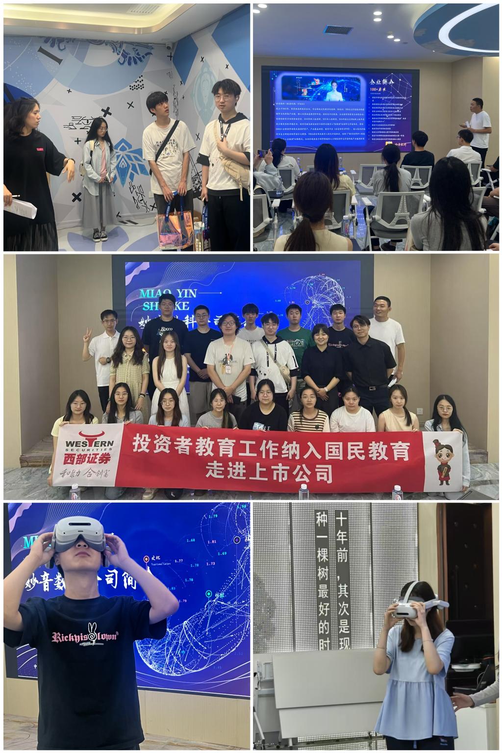 本次活动以“证券行业领航实训”为主题。6月30日上午,西部证券股份有限公司财富业务决策委员会主席、信用业务决策委员会主席、总经理助理殷涛致欢迎辞,资本市场部总经理郑峰出席并勉励学生积极学习、拓展视野。随后,投资银行业务质量控制部联席负责人马继光(我院校友)围绕《IPO企业上市战略及路径选择》开展专题讲座,北京学院南路营业部资深投顾陈松分享《证券市场监管体系》解读。当日下午,师生实地参访上市公司妙音数科,深入了解企业运营管理,体验高新AR技术,与公司专业人员探讨AI异化问题。