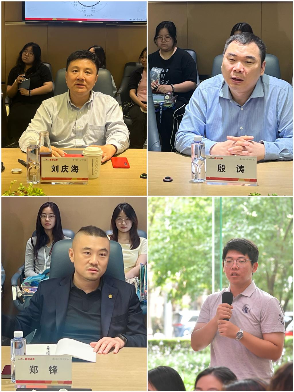 7月1日上午,西部证券人力资源部副总经理黄莹讲授《赛道选择与证券行业职业发展》,西部证券研发中心有色行业首席分析师刘博士分享《如何解读上市公司报告》。7月1日下午,师生走进北京证券交易所上市仪式大厅,参加《直达服务行千里,理性投资进万家》讲座,围绕北京证券交易所职能及上市企业发展进行交流。