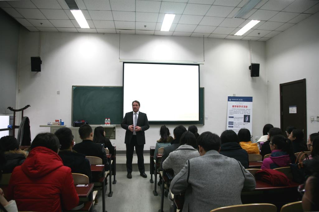 2月29日 下午,Peter Anterist教授在沙河校区举办了一场学术讲座,Peter Anterist教授结合实际案例讲解了企业在拓展海外市场过程中常见的十个误区,并与同学们就国际化背景下企业是否应该扩展海外市场、应如何扩展海外市场等问题展开了深入探讨。bv伟德国际1946学术型硕士研究生、MBA学生参加了讲座。