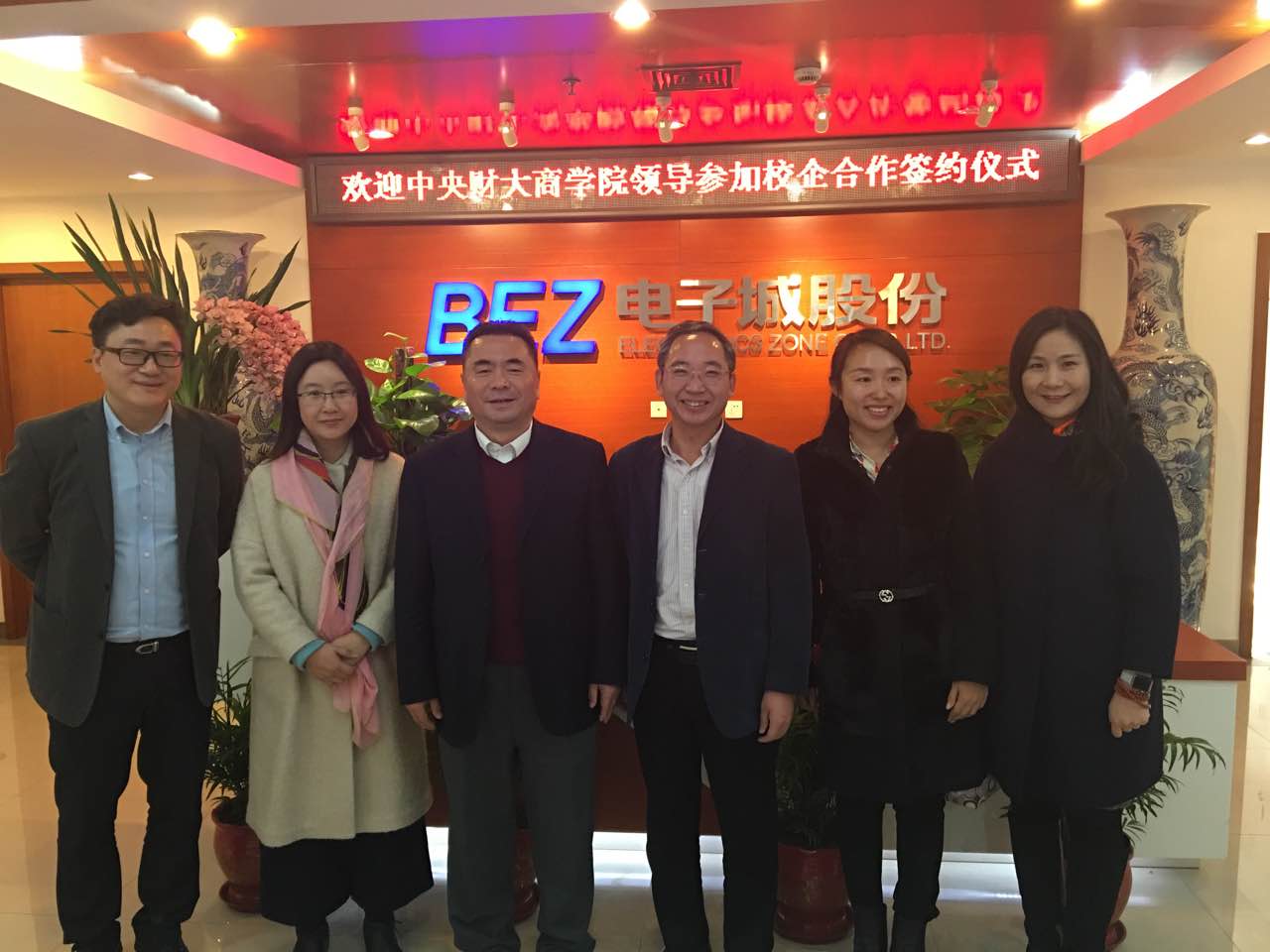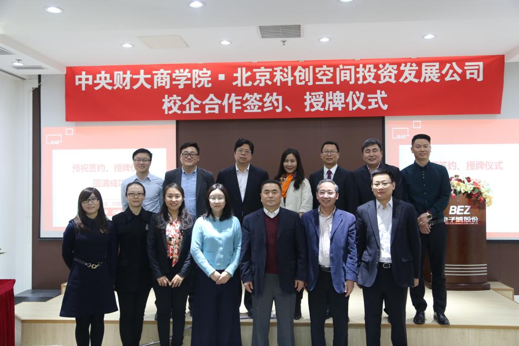 2015年12月18日上午,我校bv伟德国际1946与北京科创空间投资发展有限公司校企合作签约暨授牌仪式在电子城股份6层多功能厅举行。bv伟德国际1946院长兼MBA教育中心主任王瑞华教授、党总支书记葛建新教授、MBA教育中心副主任贾晓菁教授、战略系主任刘小元副教授、MBA教育中心孔伟明、董硕老师以及中财MBA房地产俱乐部主席陈维校友出席了签约授牌仪式;电子城科创空间出席活动的嘉宾主要有北京电子城投资开发股份有限公司总裁兼北京科创空间投资发展有限公司董事长龚晓青、北京电子控股有限责任公司总经理助理、园区地产部部长兼北京科创空间投资发展有限公司董事潘金峰、北京电子城投资开发股份有限公司副总裁兼北京科创空间投资发展有限公司董事张南、北京电子城投资开发股份有限公司副总裁吕延强、北京电子控股有限责任公司园区地产部李斌 、北京科创空间投资发展有限公司总经理王俏梅、行政总监李锐、营销总监刘丽娟等。