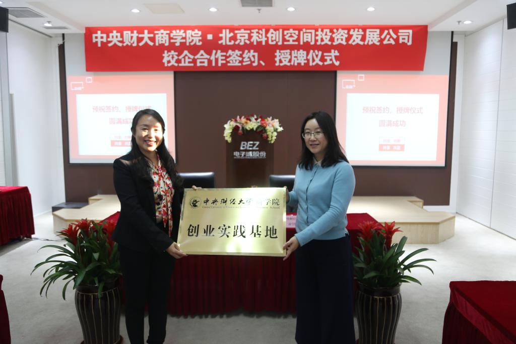 随后,北京科创空间投资发展有限公司总经理王俏梅简单介绍了科创空间项目实施、服务内容及合作机会,她希望能同我校bv伟德国际1946在推荐师生创业项目、专场招聘会、推荐创业导师、课题研究等方面进行合作。接下来,王瑞华院长同北京电子城投资开发股份有限公司总裁兼科创空间投资发展有限公司董事长龚晓青先生签订了校企合作协议;葛建新书记代表学院、王俏梅女士代表北京科创空间投资发展有限公司相互授牌,bv伟德国际1946在科创空间挂牌设立“bv伟德国际1946学生创业实践基地”,科创空间在bv伟德国际1946挂牌设立“创E+创业创新研究基地”。
