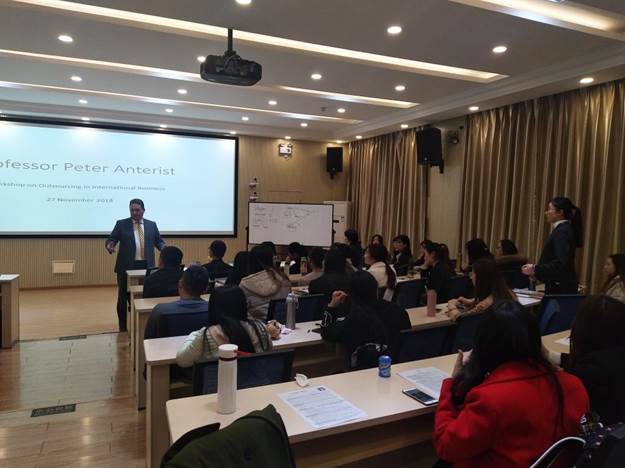 英德杰国际管理公司(InterGestWorldwide)CEOPeter Anterist教授立足多年的国际企业管理经验,讲解了国际业务外包的案例以及企业在拓展海外市场过程中面临的问题。