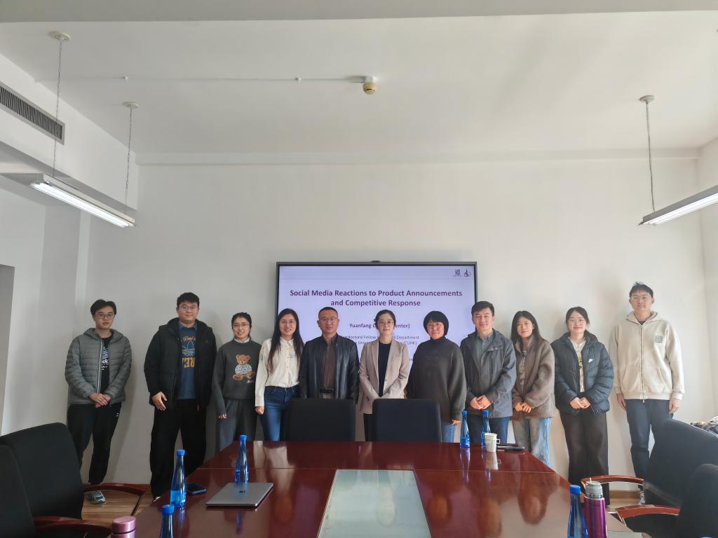 After the lecture, teachers and students in attendance conducted in-depth and lively discussions around the lecture theme, focusing on topics such as the role of social media as an information intermediary, the dynamic adjustment of product competition strategies, the identification strategy of empirical research, and the future trends of digital marketing. These discussions further deepened the exchange and collision of academic ideas.