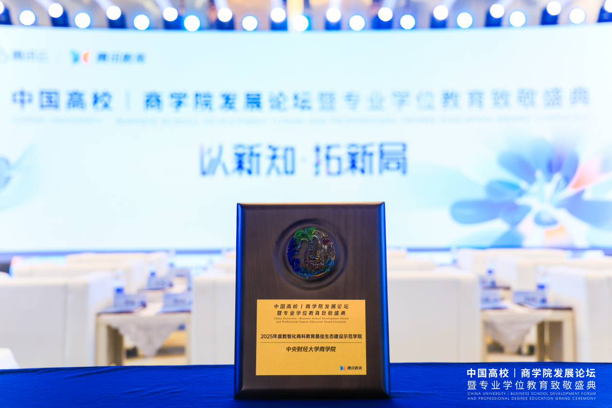 Great News! The MBA Program of CUFE has been awarded the honor of "2025 Model College for the Best Ecological Construction in Digital and Intelligent Business Education" at the Tencent Business School Development Forum