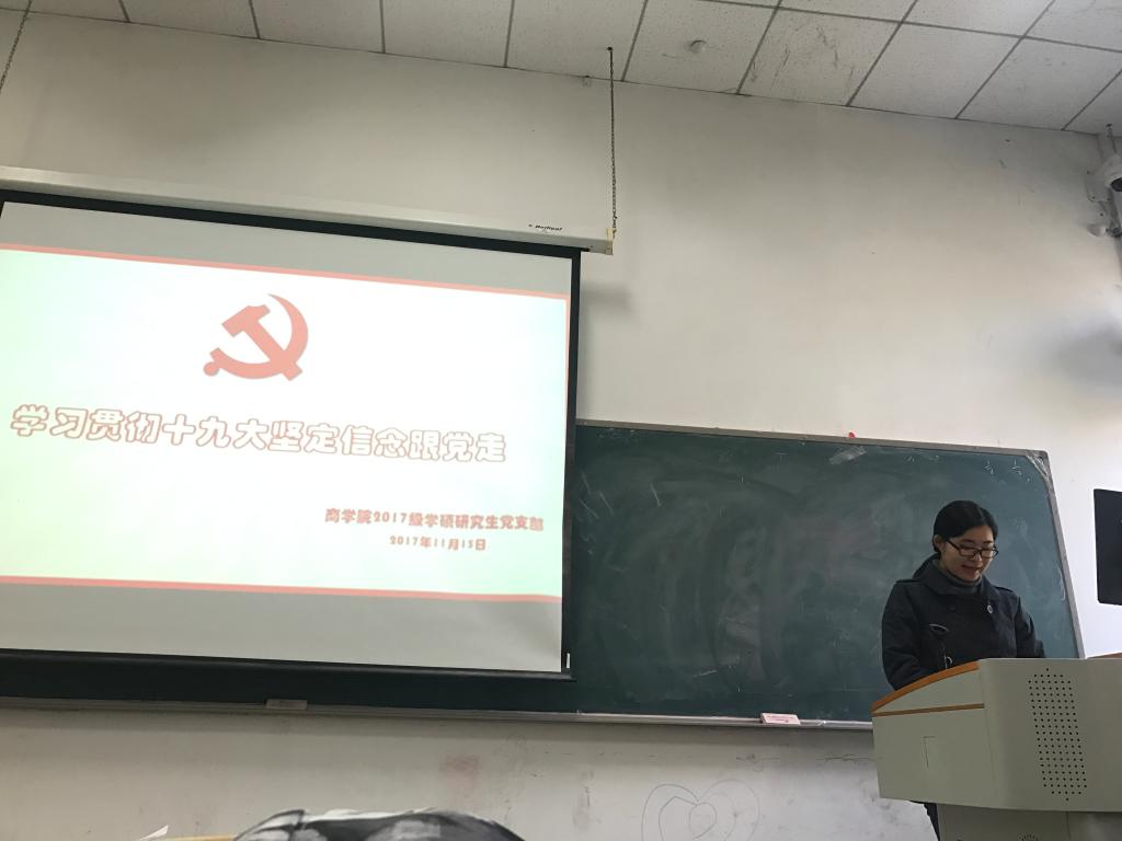 2017年11月15日上午10时,全体2017级bv伟德国际1946研究生党员在支部副书记夏开伟同学的带领下进行了学习党的十九大精神的党日活动。