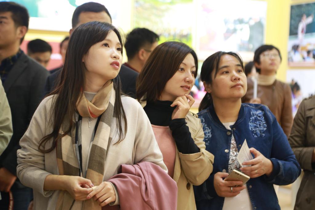 展示先进典型、时代楷模“群星灿烂 七星共明”的立体柱,演示中国伙伴关系网络遍布全球的多媒体产品,呈现干部队伍建设和全面从严治党的图文展板,港珠澳大桥模型,世界上下潜深度最大的作业型载人潜水器“蛟龙号”模型,中国自主研制的首台400马力无级变速拖拉机,强军征程扬帆远航武器装备模型……各种运用多媒体和声光电手段的实物模型、视频资料、图片图表,浓墨重彩展示了党的十八大以来,以习近平同志为核心的党中央团结带领全党全国各族人民取得的辉煌成就。