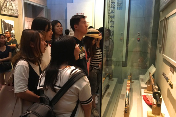 沿着历史的脉络一路参观,一幅幅图片,一张张图表,一件件实物,一段段视频,把入党积极分子带回了近代以来跌宕起伏、波澜壮阔的难忘岁月。19世纪末列强虎视眈眈、瓜分中国的时局图提醒着参观者牢记那段屈辱苦难的岁月;鸦片战争的虎门大炮、甲午海战的军舰模型、太平天国义和团的战斗旗帜彰显了中国社会各阶层的奋起反抗;洋务运动的蒸汽纺织机、维新变法的公车上书,象征着中国人民对救亡图存之路的孜孜求索;轰轰烈烈的辛亥革命推翻了清政府的统治,五四运动翻开了新民主主义革命的篇章。