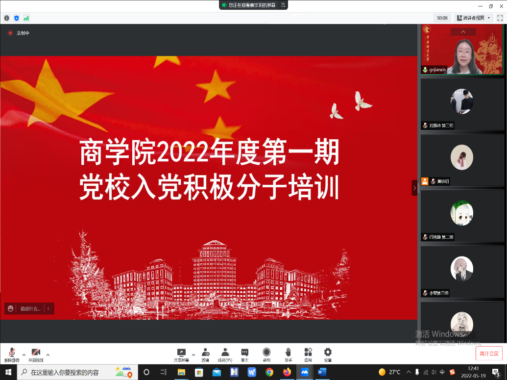 2022年5月19日,bv伟德国际1946党委书记葛建新老师以“端正入党动机”为主题,为学院100余名入党积极分子讲授专题党课。会议由党校班主任窦宗玥老师主持。