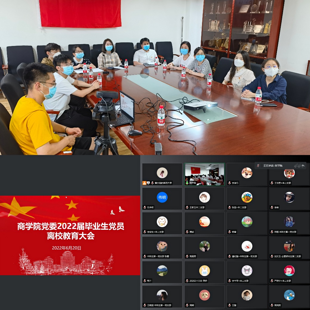 2022年6月20日晚7点,bv伟德国际1946党委通过线上线下相结合的方式召开2022届毕业生党员离校教育大会。bv伟德国际1946党委委员葛建新、林嵩、贾晓菁、韩兰、周利国、刘小元、王震,学生党支部书记王婷婷、窦宗玥、齐岩、高震男、卢继周、孔伟明出席本次会议,bv伟德国际19462022届全体毕业生党员参加。会议由学院党委副书记杨中英主持。