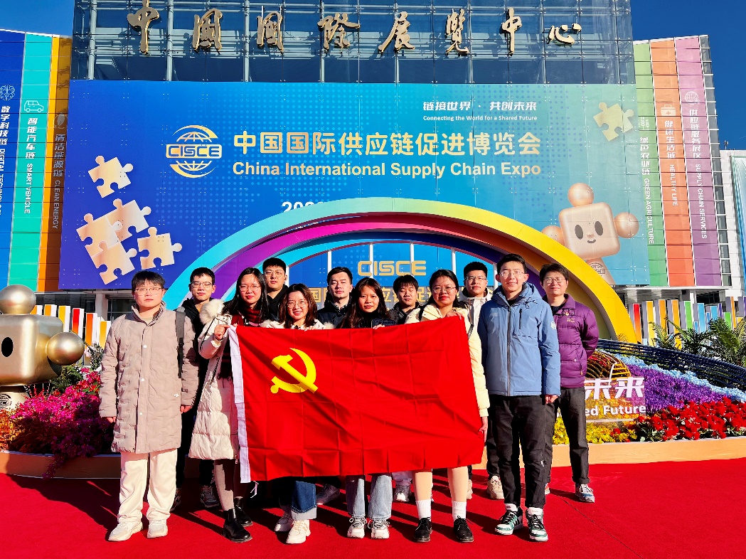 为学习贯彻习近平新时代中国特色社会主义思想主题教育,深入贯彻落实党的二十大精神,加强党支部建设、丰富支部内文化活动,2023年12月2日,bv伟德国际1946技术经济及管理专业研究生党支部8名党员、预备党员同志及3名入党积极分子在支部书记卢继周老师的带领下前往中国国际展览中心(顺义馆)参观首届中国国际供应链促进博览会(以下简称“链博会”)。