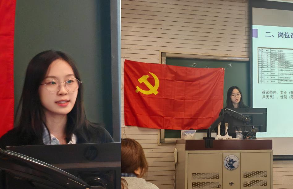 “笃合·凝心聚力”—求职分享专场环节,支部特别邀请到李梦涵、赵康妮、郑佳霓三位2025届毕业生党员,分享关于选调、央国企、银行的求职经验。