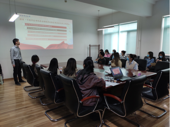 杨开宇同志带领支部党员和发展对象一起学习了习近平总书记在全国脱贫攻坚总结表彰大会上的重要讲话,习近平总书记从5个方面总结了脱贫攻坚取得的重大历史性成就,从7个方面阐述了中国特色减贫道路和反贫困理论。另外,宣讲人还向大家讲解了财政研究和各类企业在脱贫攻坚中的重要作用,参会成员认真聆听杨开宇同志的分享,积极交流自己对我国脱贫攻坚工作取得重大成就思考与心得体会。