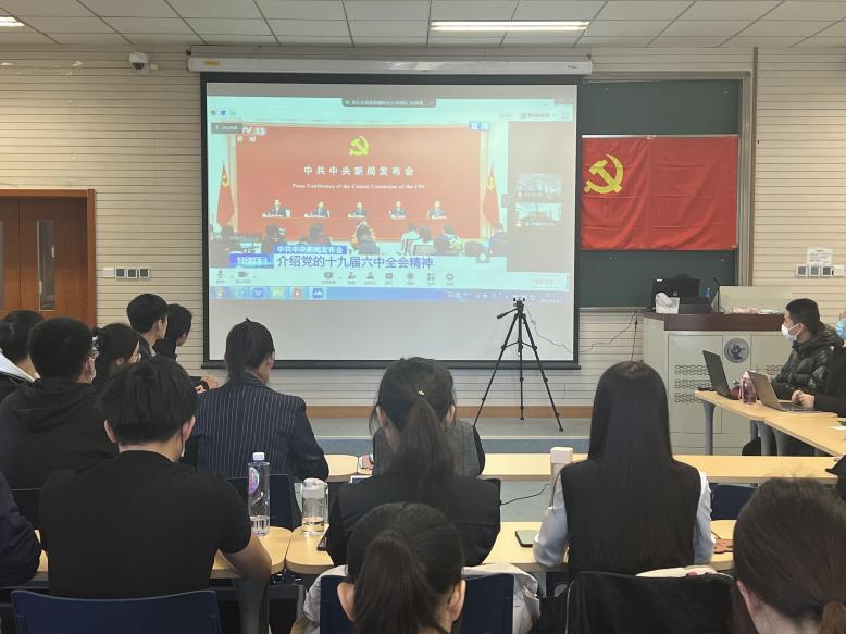 新疆财经大学国际经贸学院副院长王生辉老师进行十九届六中全会导学。王老师介绍了自己对于党的十九届六中全会重大意义的认识和理解,并希望两个支部的同学们通过此次联学,进一步坚定政治信念、刻苦学习,将个人理想融入国家发展大业。