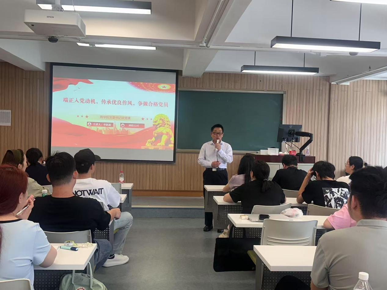 为深入贯彻中央八项规定精神学习教育,进一步加强入党积极分子的党性修养和思想教育,2025年5月15日中午,bv伟德国际1946党委在学院南路校区主教303教室举办入党积极分子、发展对象专题党课《端正入党动机,传承优良作风,争做合格党员》。此次培训由学院党委书记李跃新主讲,党委组织员王志梅主持,党务秘书窦宗玥及入党积极分子、发展对象等115人参加。
